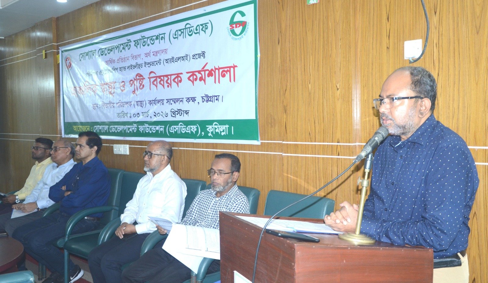 মঙ্গলবার ( ৩ মার্চ) সকাল ১১টায় নগরীর সিনেমা প্যালেস সংলগ্ন বিভাগীয় স্বাস্থ্য পরিচালক কার্যালয়ের সম্মেলন কক্ষে সোশ্যাল ডেভেলপমেন্ট ফাউন্ডেশন (এসডিএফ) আয়োজিত আঞ্চলিক পর্যায়ে স্বাস্থ্য ও পুষ্টি বিষয়ক কর্মশালায় সভাপতির উদ্বোধনী বক্তব্যে তিনি এসব কথা বলেন।