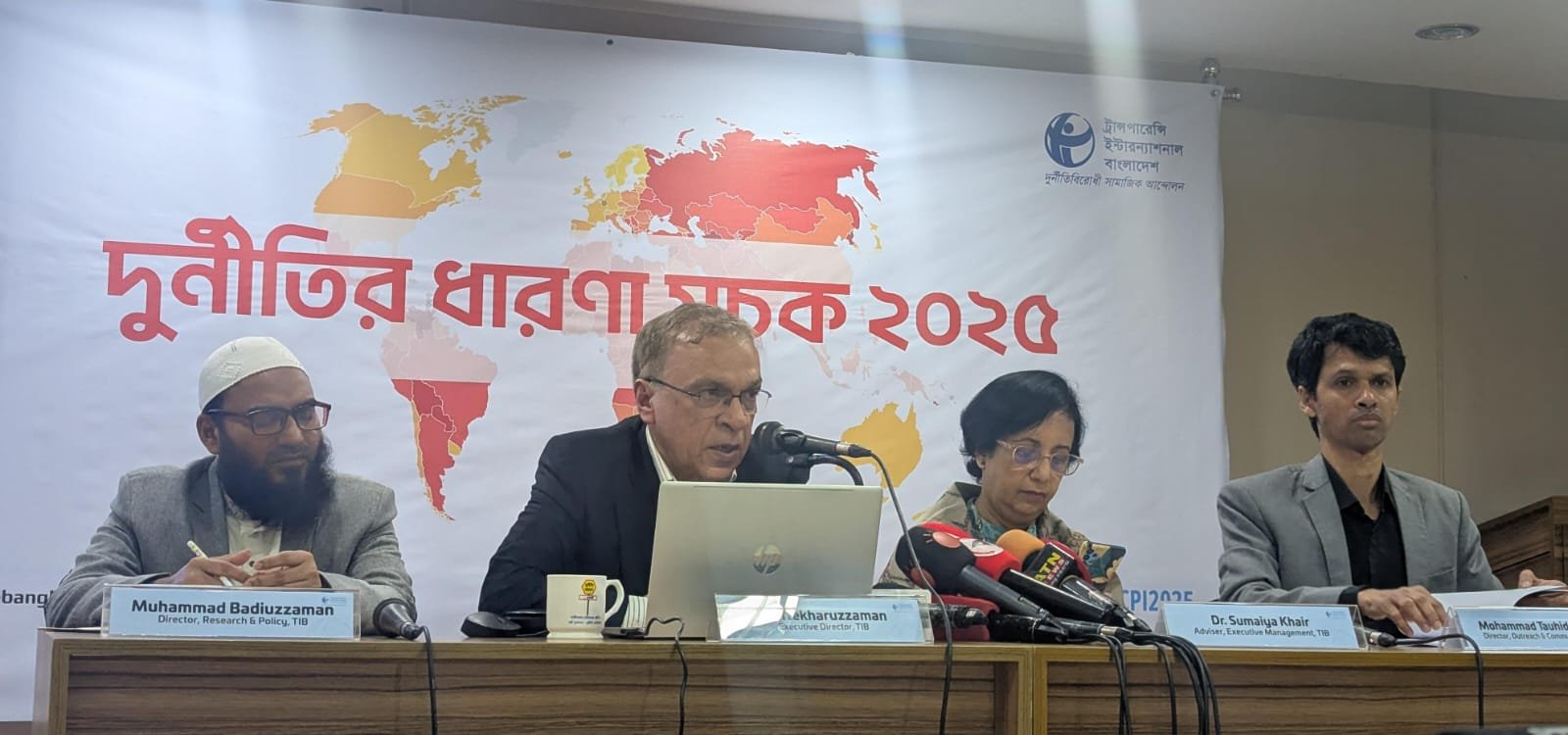মঙ্গলবার (১০ ফেব্রুয়ারি) সকালে রাজধানীর ধানমন্ডির মাইডাস সেন্টারে ট্রান্সপারেসি ইন্টারন্যাশনালের করাপশন পারসেপশন ইনডেক্স (সিপিআই) বা ‘দুর্নীতির ধারণা সূচক ২০২৫’ প্রকাশ করে ট্রান্সপারেন্সি ইন্টারন্যাশনাল বাংলাদেশ (টিআইবি)। টিআইবির নির্বাহী পরিচালক ইফতেখারুজ্জামান এ তথ্য তুলে ধরেন।