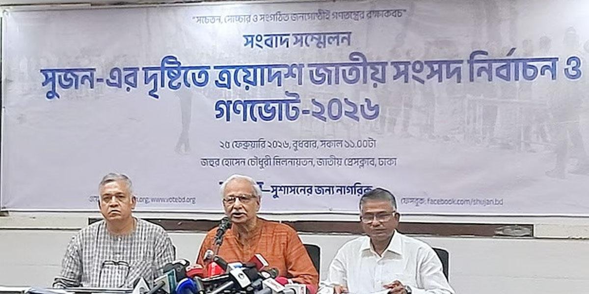 বুধবার (২৫ ফেব্রুয়ারি) রাজধানীর জাতীয় প্রেস ক্লাবে আয়োজিত সংবাদ সম্মেলনে তারা এসব তথ্য জানায়। জাতীয় সংসদ নির্বাচন ও গণভোট নিয়ে সুজনের পর্যবেক্ষণের লিখিত বক্তব্য পাঠ করেন সংস্থার সদস্য একরাম হোসেন।