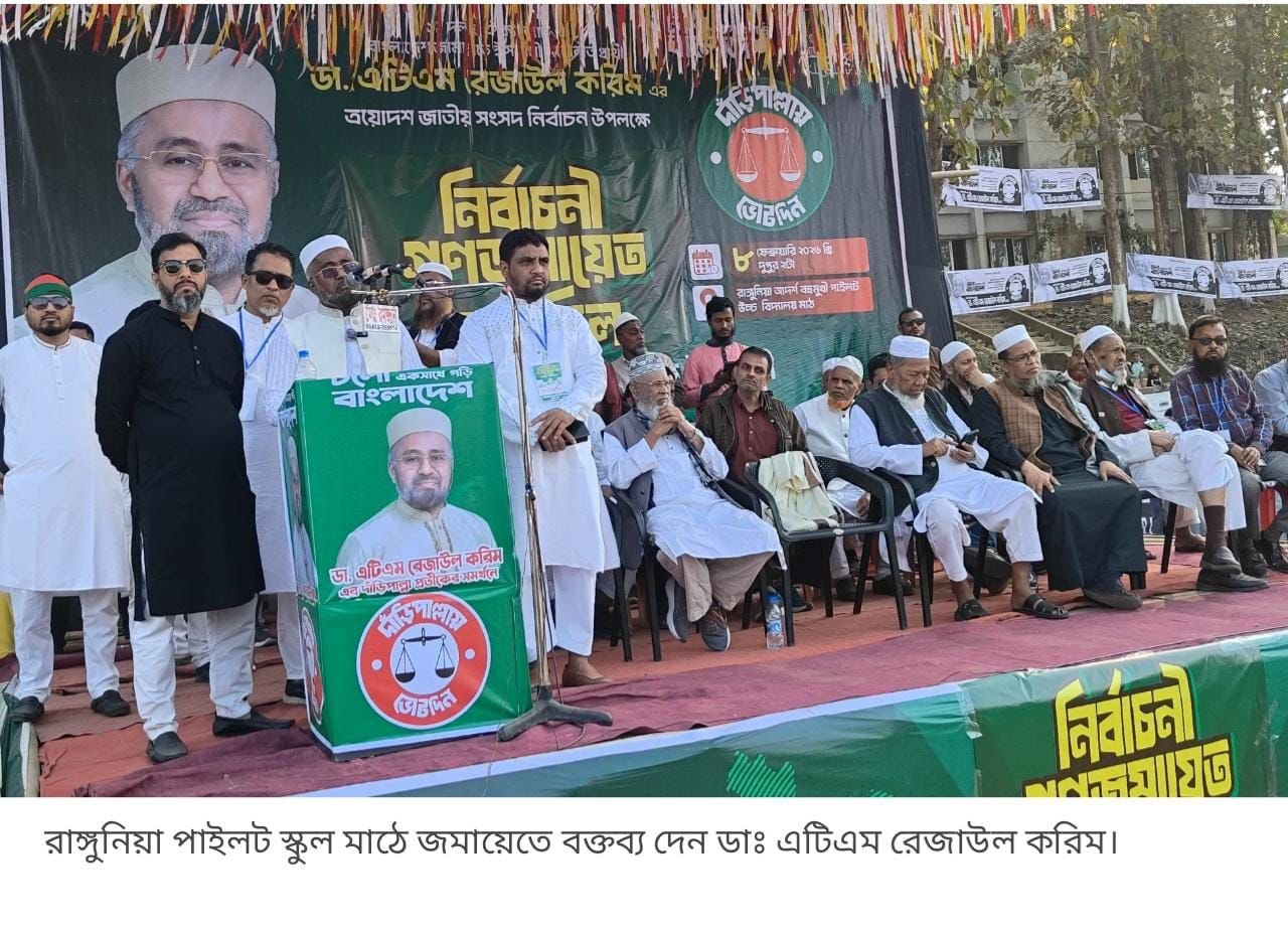 রাঙ্গুনিয়ার উন্নয়নের ধারাবাহিকতা বজায় রাখতে হলে নেতৃত্ব দিতে হবে রাঙ্গুনিয়ার সন্তানদেরই। মানুষের বাস্তব চাহিদা ও এলাকার দীর্ঘদিনের সমস্যাগুলো জানে এমন নেতৃত্ব ছাড়া টেকসই উন্নয়ন সম্ভব নয়। রাঙ্গুনিয়ার দৃশ্যমান সব উন্নয়ন রাঙ্গুনিয়ার সন্তানদের হাত ধরেই হয়েছে বলে মন্তব্য করেছেন রাঙ্গুনিয়া জামায়াতে ইসলামী মনোনীত প্রার্থী ডা. এটিএম রেজাউল করিম।
